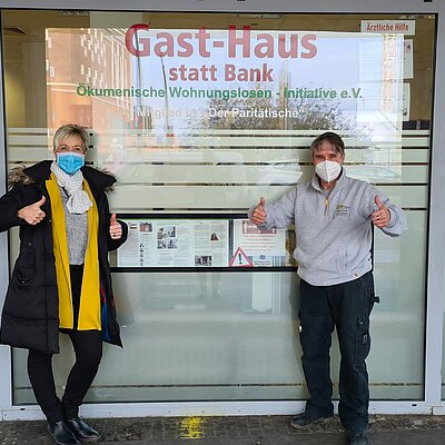 Mitarbeiter der GMS spenden an das Gast-Haus statt Bank ökumenische Wohnungslosen-Initiative e.V.