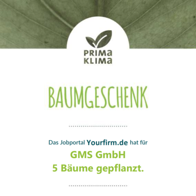 Das Jobportal Yourfirm.de hat für die GMS GmbH 5 Bäume gepflanzt.